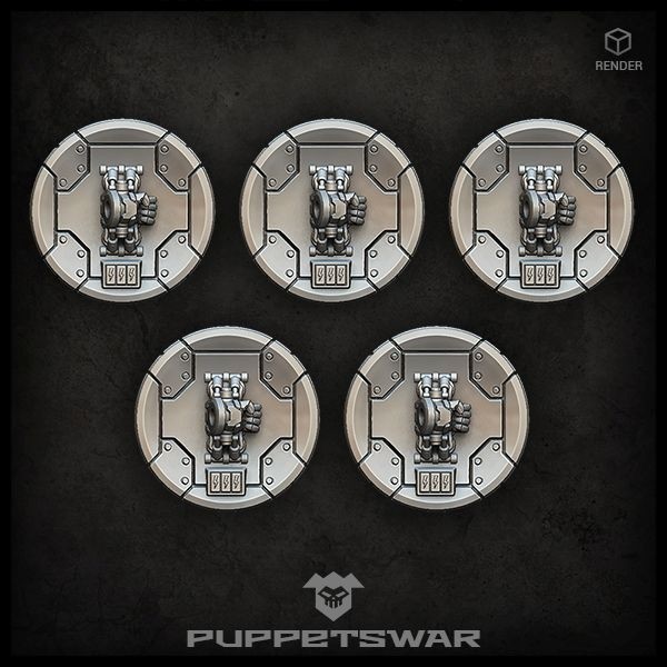Set containsFive models of Runic shields with a left hand.DescriptionModels designed for 32mm tabletop wargames scale as an infantry weapon. Models have slots for 2×1 magnets. Supplied unassembled and unpainted.DimensionsA diameter 22mm.A maximum width 7mm.MaterialHigh-quality resin, parts may require reshaping in hot water.CompatibilityInfantry and heavy infantry models.