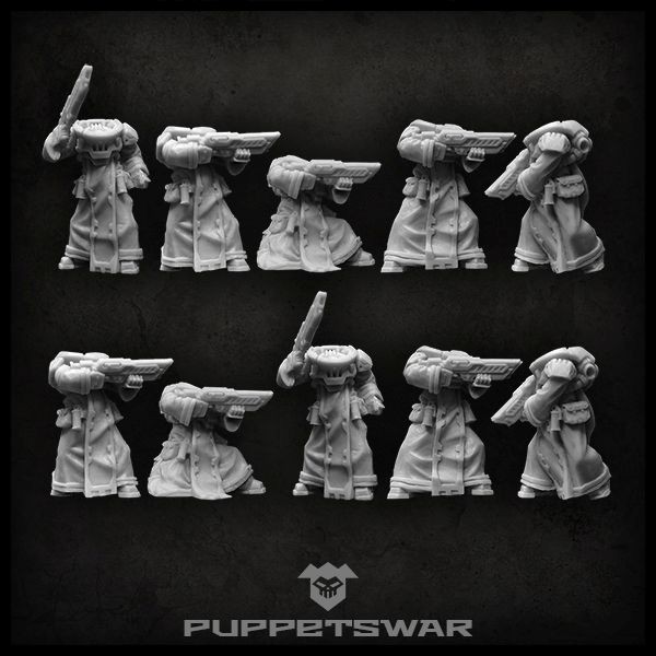 Set contains 10 Tech troopers. Models are designed to fit 28mm „heroic“ tabletop wargames scale, (max 33mm height) supplied unassembled and unpainted.