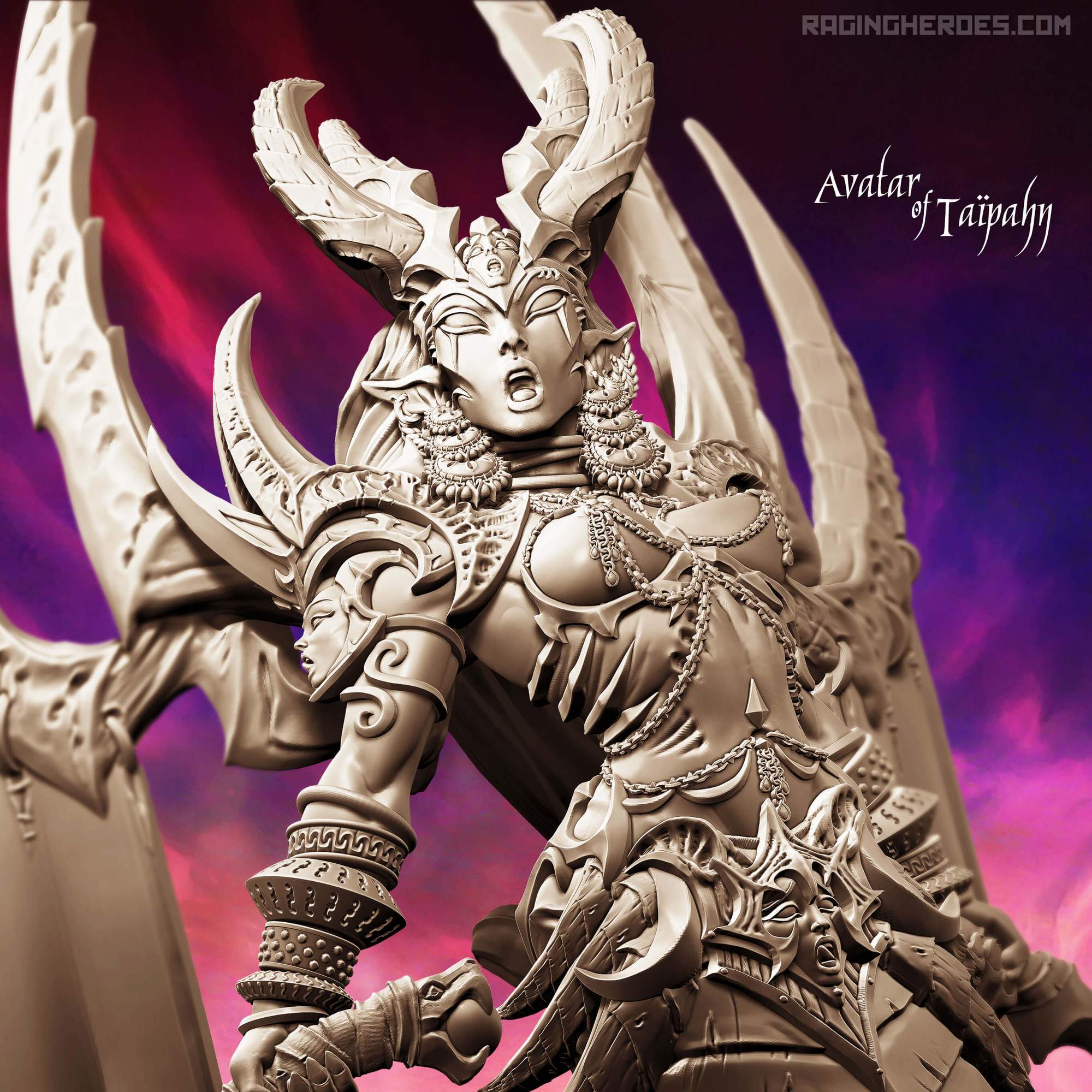 The Avatar of Taïpahn is 233mm tall, that is, over 9.1 inches from floor to highest point. Lovingly designed with brilliant details, this huge model will be a fantastic addition to your army and a dream to paint. This massive miniature is one of the biggest demons you’ll likely ever have on your table.