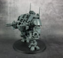 Dass Bausätze von Games Workshop beim Zusammenbau keine großen Probleme machen, ist bekannt, und auch der Primaris Invictor Tactical Warsuit bildet da keine Ausnahme. Wie bei Plastikbausätzen üblich, lässt sich alles mit einem stumpferen Bastelmesser oder mit einem Entgrater problemlos säubern. Der Bausatz ist an einem Abend gut zu bauen. An Optionen bietet der Warsuit zwei Hauptwaffen, die Eisenhagel- Zwillingsmaschinenkanone und die Incendium-Kanone. Optional kann man auch den Schweren Bolter an die Hand bauen oder an der Seite festmachen. Der Pilot des Warsuits hat drei Kopfoptionen. Wir haben uns für den geschlossenen Helm entschieden.