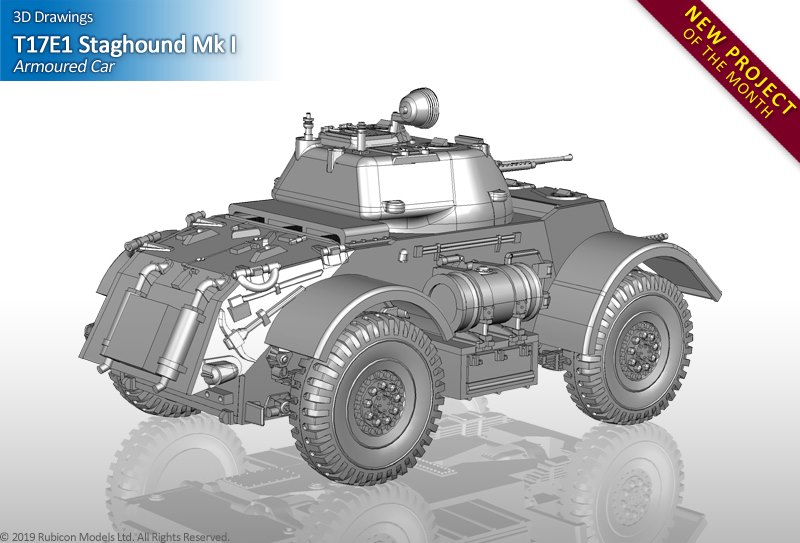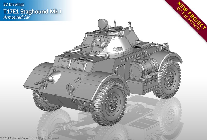 The T17E1 Armoured Car was an American armoured car design produced during WW2. It never saw service with frontline US forces but was supplied, via the United Kingdom, to British and Commonwealth forces during the war and received the service name „Staghound“. A number of countries used the Staghound after the war, with some of the vehicles continuing to serve into the 1980s. A total of 4,094 were produced.