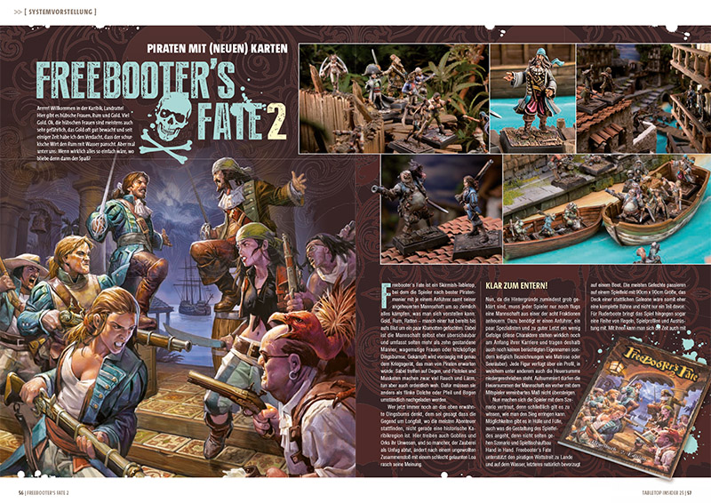Es kommt also eine Menge Papier auf euch zu, das mit phantastischen Hobbyinhalten gespickt ist. Unser Titelthema haben wir der zweiten Edition von Freebooter’s Fate gewidmet. Das stolze Piratenschiff aus heimischem Hafen wurde ordentlich auf Vordermann gebracht und aufpoliert! In unserem exklusiven Preview auf Rapture sprechen wir dann mit den Machern von Gravity Bay über ein anderes deutsches Tabletop, das demnächst im Crowdfunding neue Fans zu begeistern sucht. Und wo wir schon bei Previews sind, haben wir uns den Entwickler von Super Fantasy Brawl geschnappt und mit ihm über die Entstehung des Spiels gesprochen, das erfolgreich von Mythic Games auf Kickstarter finanziert wurde. Das steht Infinity Defiance im Herbst noch bevor, weshalb uns Belén Moreno von Corvus Belli etwas zum Hintergrund und den Spielmechanismen des Dungeon Crawlers erzählt, der in einem der beliebtesten SciFi-Universen der Tabletop-Branche angesiedelt ist.