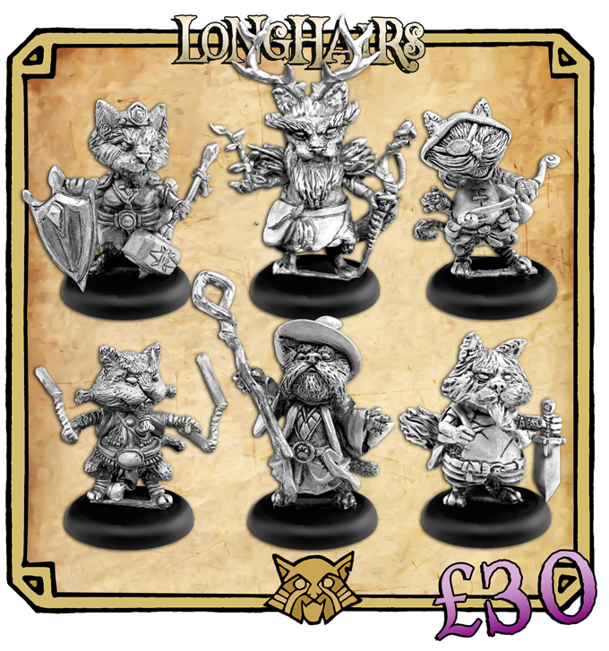 The Cats of Crumptown are or were domestic cats but through prolonged contact with the arcane magicks of the Darkewood they have become sentient and achieved human levels of intellect. These curious kitties live in the port of Crumptown near to the Darkewood and the Realm of the Nightfolk. We want to bring them to you as Heroic 28mm Scale white metal miniatures for you to use in RPG’s and Tabletop Wargaming.