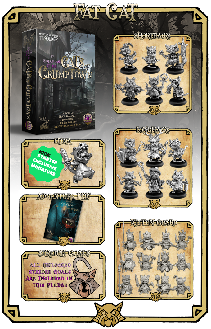 - Fat Cat – A full set of 12 Cats of Crumptown and Luna the Dragon Kickstarter Exclusive Miniature in deluxe box set, along with The KittenGuard add-on. A massive 25 miniatures.
