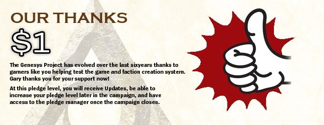 This Kickstarter campaign is to fund a printed version of the first two books for The Genesys Project – CORE RULES (a 96-page book) and The Genesys Project –The Birth of Genesys (a 144+ page book).