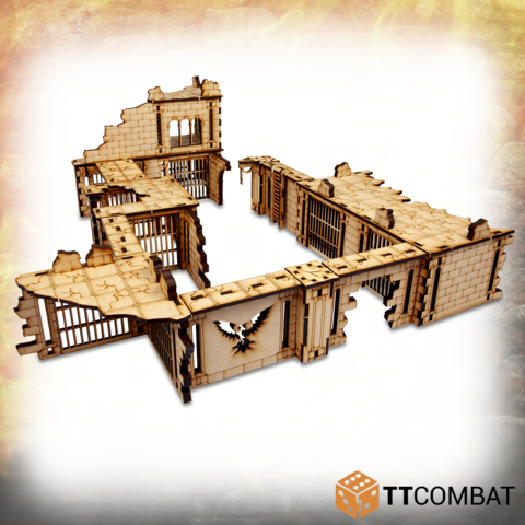 The Derelict Enclave kit is a set of single and two storey ruins, connecting bridges and walkways.