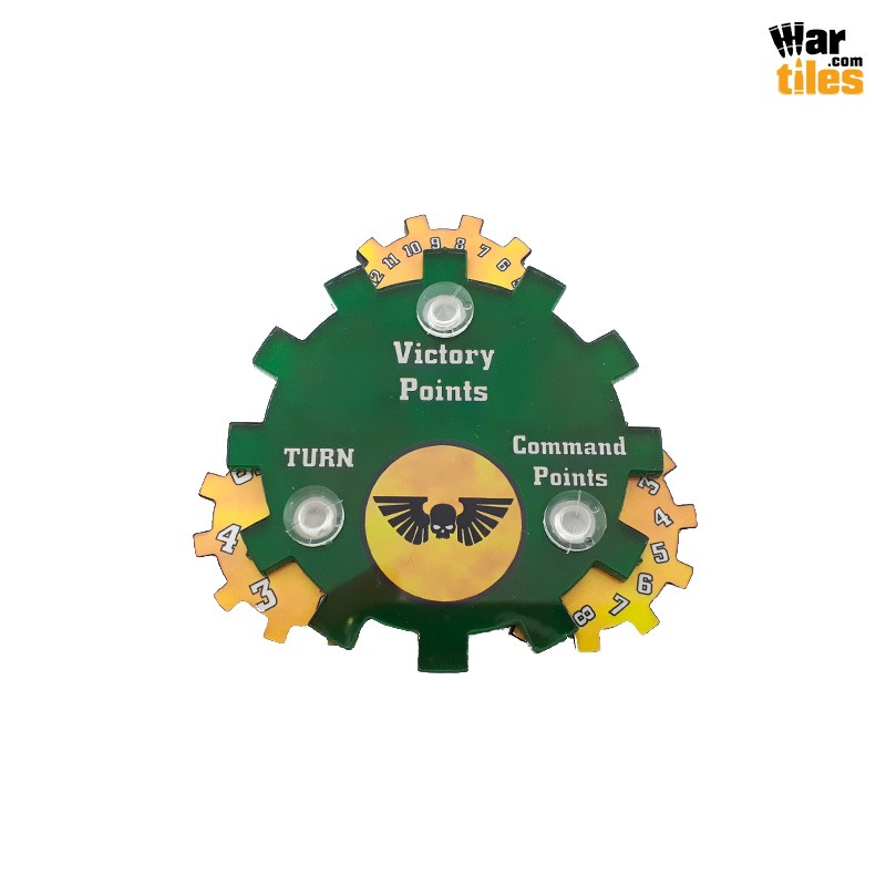 This is 1 triple Battle Tracker with Imperial Militarum pattern. It will help you to track Turns, Victory Points and Command Points in your games. Tracker is made from 2 layers of plexiglass with label between. Models and terrain shown for scale purpose. They are not part of this set.