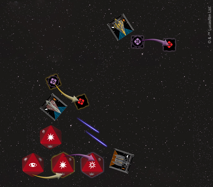 Known as one of the best starfighter pilots in the galaxy, he can pull off even the most difficult maneuvers with ease. If he’s able to place an enemy ship in his front arc at range 0–1 or in his bullseye arc after fully executing a maneuver, he can then spend a Force charge to remove a stress token.