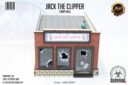 There is ‚Brewed Awakening‘ : a coffee shop, ‚Pizza The Action‘ : a pizzeria, ‚Jack The Clipper‘ : a barbershop and ‚Flinn’s Arcade‘ : an arcade and pinball gaming shop.Each of these buildings have different, highly detailed insides, complete with furniture. Fridges,ovens and serving hatch for Pizza The Action, pinball machines for Flinn’s Arcade etc.Each building has a clean or dirty sign, and broken or unbroken windows, so you can tailor the building to how ruined or normal your board is, though we’ve only shown the dirty signs and smashed windows here.These are pre-painted MDF buildings, at only £25 each, or buy together as a bundle for a £20 saving.