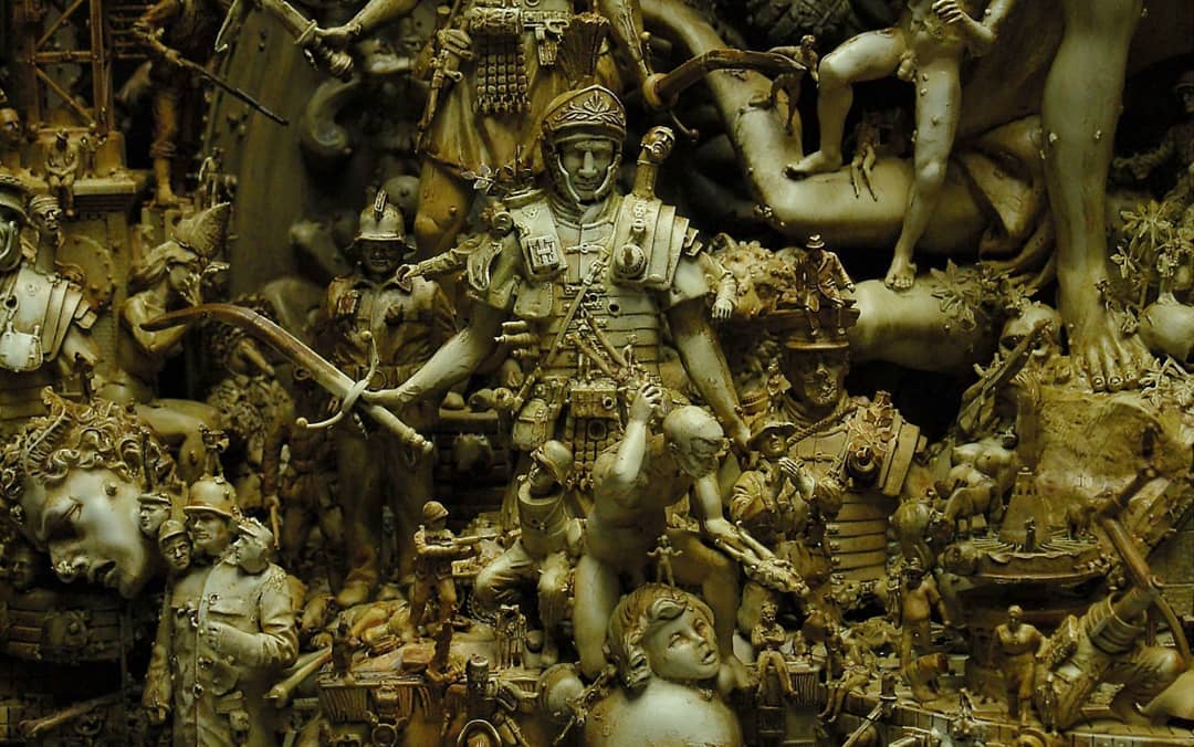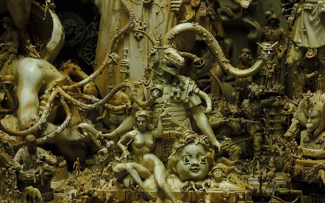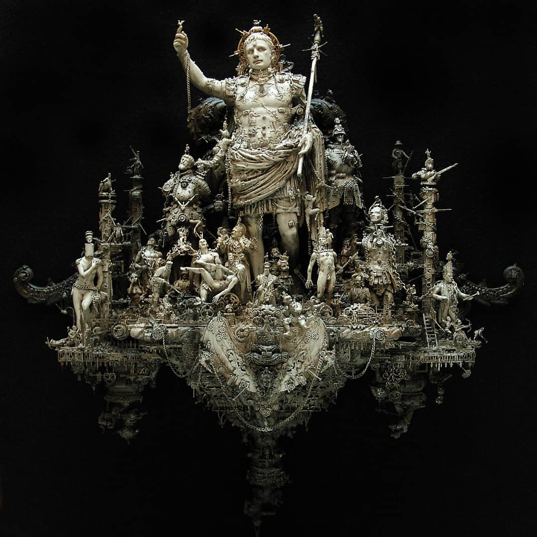 Kris Kuksi bezeichnet sich selbst als 3d assemblage artist, und seine aus zahllosen Teilen zusammengestückelten Dioramen werden dieser Bezeichnung mehr als gerecht. Antike, Renaissance, H. R. Giger und Metropolis treffen in seinen Werken aufeinander und verschmelzen zu faszinierenden Kreationen, in denen man sich wirklich verlieren kann. Wir wünschen viel Spaß mit unserer Auswahl und raten dringend zu einem Besuch seiner Instagram-Seite!