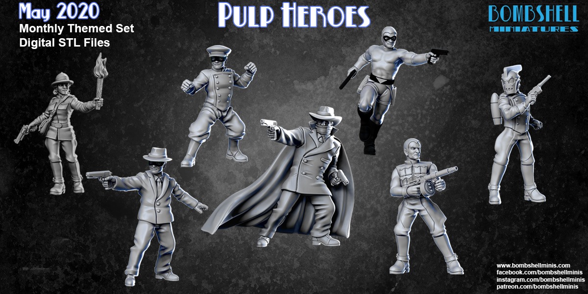 Bombshell zeigt den ersten Teil der Mai-Kollektion ihres Patreons. Diesmal sind es Helden-Miniaturen rund um das Thema klassischer Pulp.