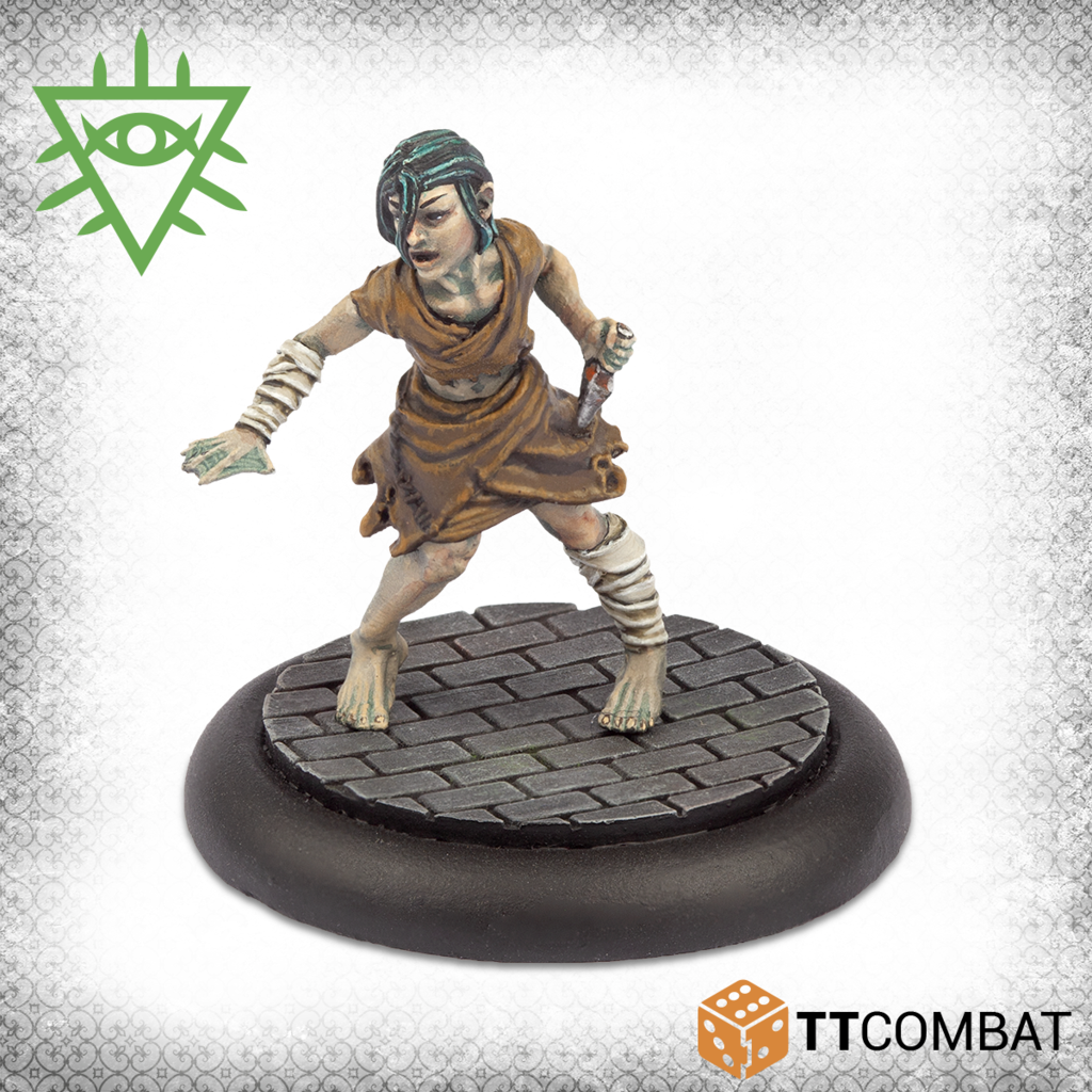 For any Rashaar players that want to improve their ground game, the Dagon Fanatics will help out! A Demagogue spurs your gang on to higher purpose, followed by a loyal (and tough) Enforcer. The Handler is a Rashaar player’s friend for dealing with other monsters, while the two Urchins will stab any opponent in the back if they get given half a chance.