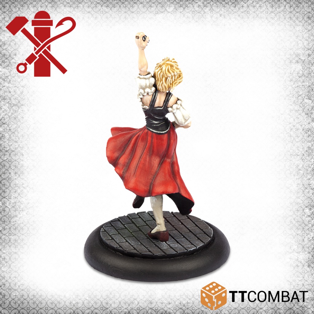 This set contains Baba-Yaga, the Guild’s premiere answer to magic use in Carnevale. Floating into the fight on tendrils of blood, her magical ability is not to be questioned! With the Blood Rights command ability she sees your other gang members‘ blood as her rightful possession, and will take it from them by force, replenishing her own Will Points! If her magic doesn’t get your enemies, her massive pestle surely will.