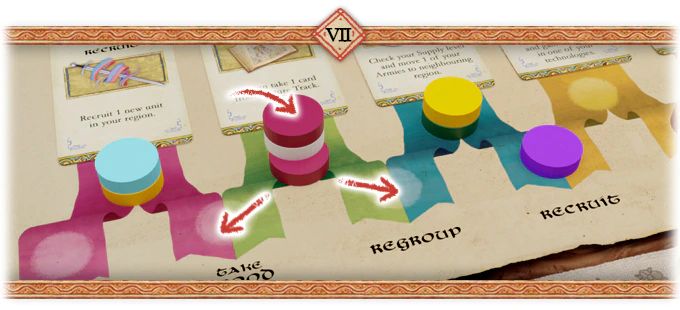 Place a Noble disc on one of five Actions. Use the selected Action to: