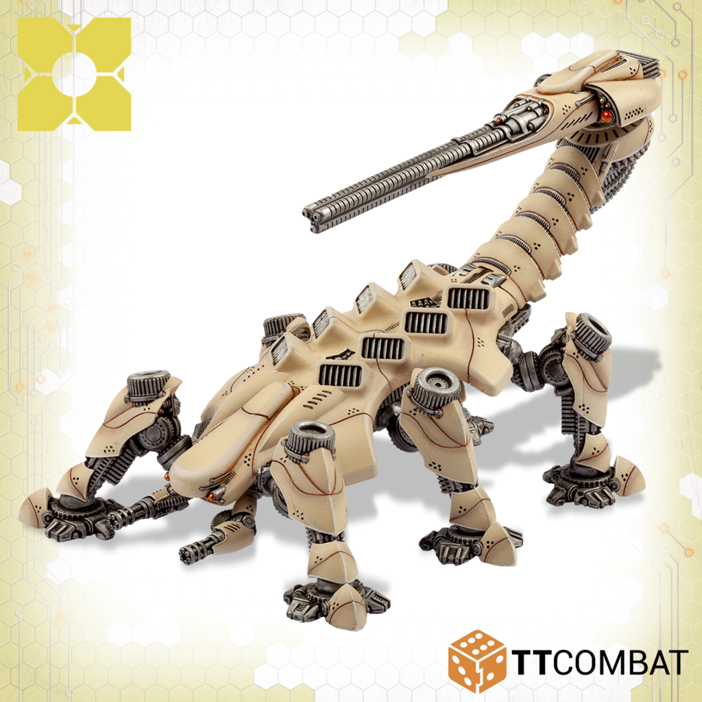 What’s better than a giant scorpion? A giant scorpion with a massive gun! What’s better than that? A giant scorpion with a swarm of nanobots! The Type-4 is a massive unit, with Armour 14 and 8 Damage Points, this thing isn’t going down quickly. While it is slow, it can be safely transported in a Poseidon, dropped into battle and left alone – that’s what your opponent will be hoping to do!