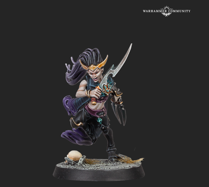 Leading the Daughters of Khaine is a Melusai Ironscale. Crafted from the most vengeful souls among all the aelves, this elite war leader is resistant to hostile magics and can channel Morathi’s might to turn foes into immobile – but fully conscious – crystal statues. In your games, that means enemies need to beware mortal wounds.