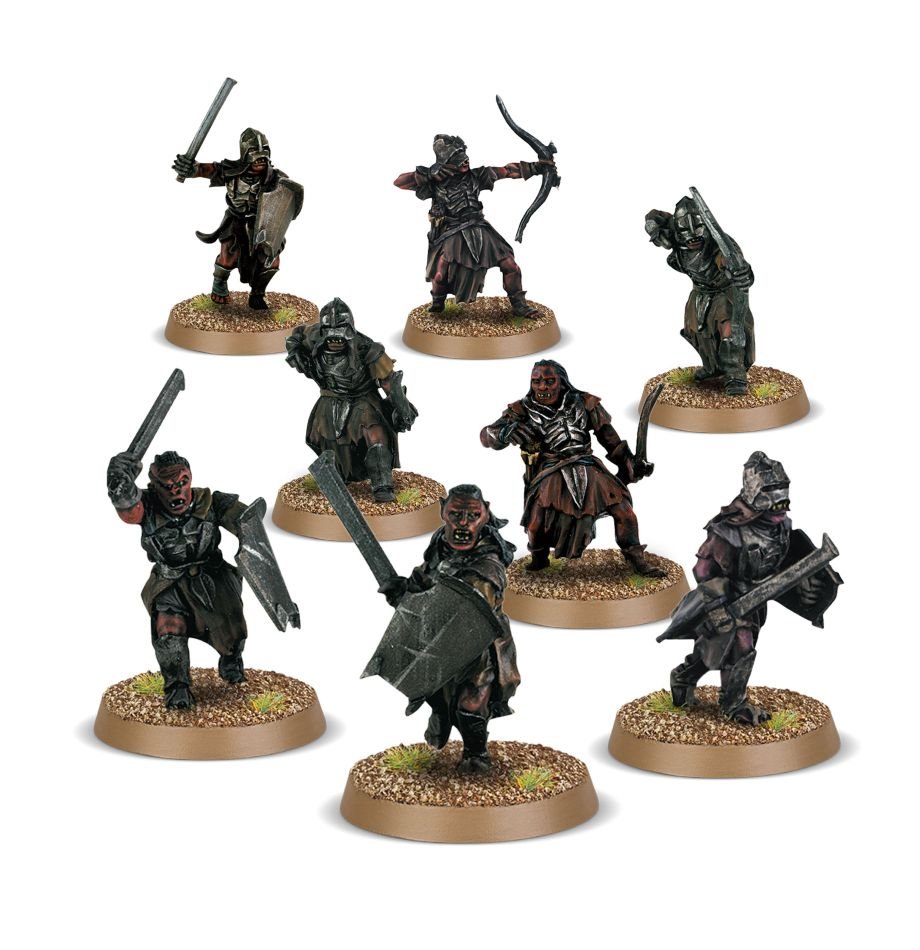 Die Orks dieses Sets sind mit einer Mischung aus Schilden und Uruk-hai-Bögen bewaffnet (jeweils 4), und daher bietet es eine gute Mischung aus Kundschaftern der Uruk-hai für deine Isengart-Sammlung.