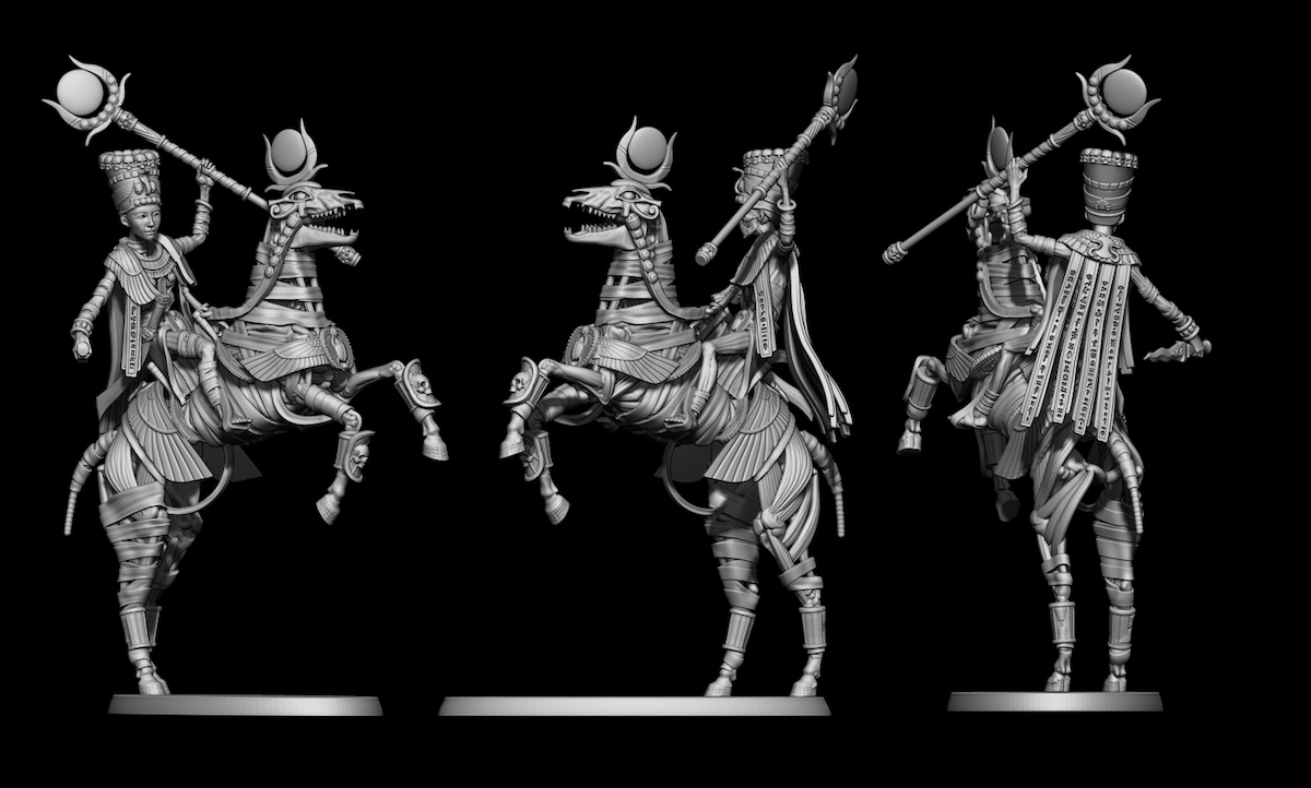 Hello, everybody! The hero on skeleton camel is finished! I hope you like it as much as I do. This character comes with a choice of kopesh or bow and the mask is separate. You will also have the option of a rectangular or oval base.Don’t miss the August launch to get it among many other things!