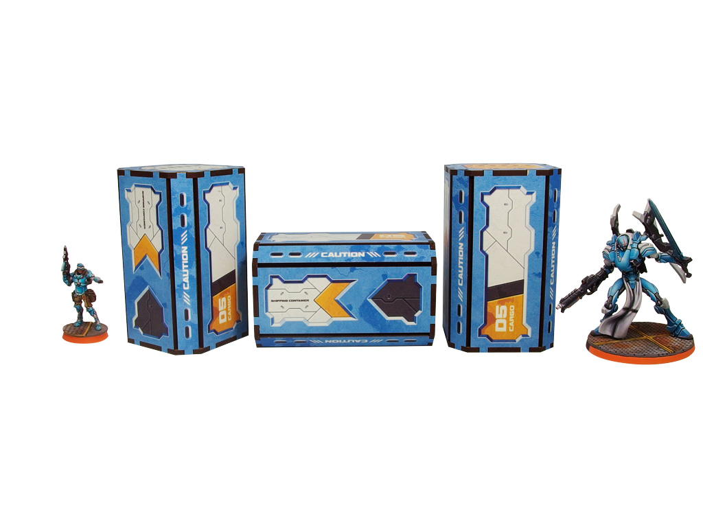 The District 5 Containers PREPAINTED set consists of 3 containers, dedicated for Infinity the Game by Corvus Belli.