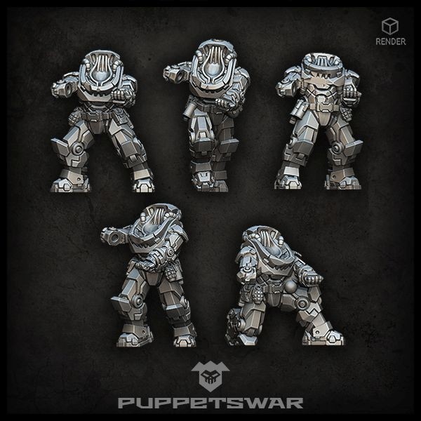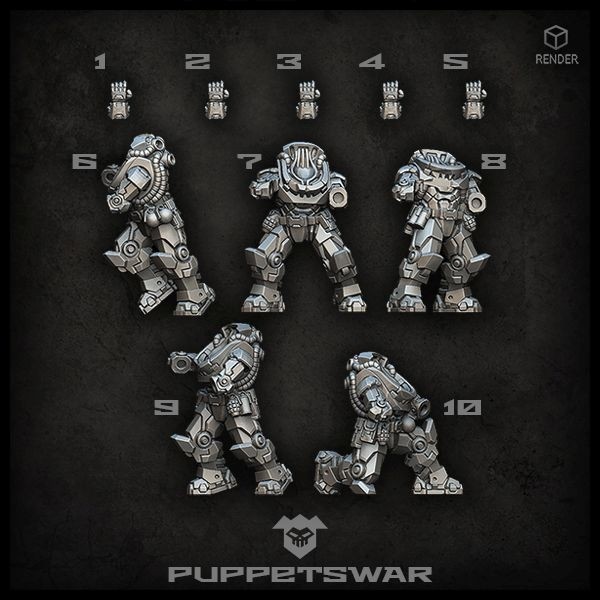 Five models of Knight Prime Strikers bodies.DescriptionModels designed for 32mm tabletop wargames scale as infantry bodies. Models have slots for 3x1mm. Supplied unassembled and unpainted.DimensionsA maximum height of a model from foot to top of the back is 40mm.MaterialHigh-quality resin, parts may require reshaping in hot water.Compatibility