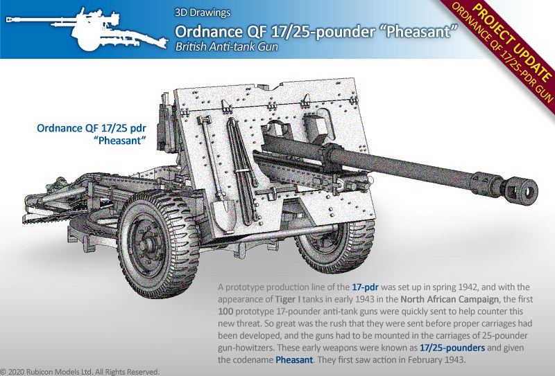 Weekend Teaser for this week… By repeated requests from you, we are adding a 17pdr gun to our QF 25pdr gun plastic kit, offering a QF 17/25 pdr „Pheasant“ build option. You now have 3 gun barrels to choose from. The community had spoken… Enjoy!