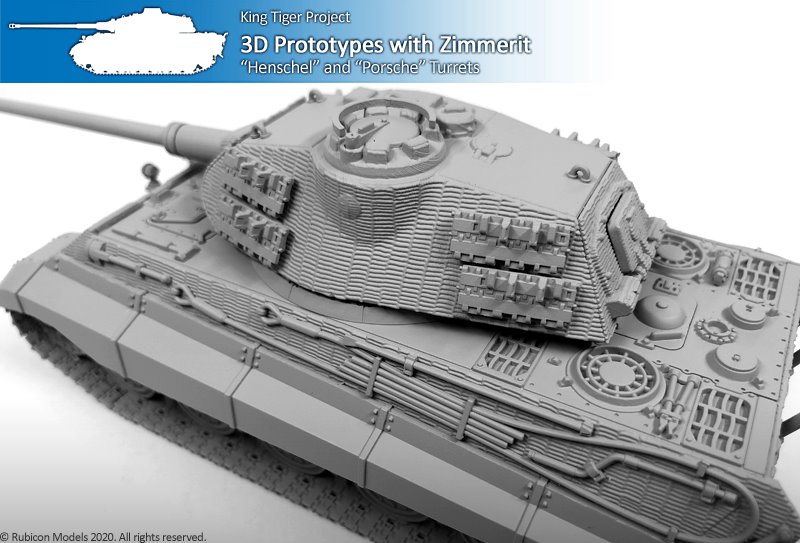 Ein sehr schickes Modell und auch das Zimmerit sieht echt gut aus.(hier Rubikon ja, wenn ich das richtig verstanden habe, das Zimmerit digital drauf modelliert und nicht gestempelt). Mal schauen ob ich mir das fertige Produkt zulege, habe eigentlich schon genug KöTis (einen in 1:56 von WG / Italieri sowie jeweils den Henschel als auch den Porsche Königstiger in 1:48:von Tamiya). Aber interessant wäre zum Beispiel auch mal ein aufgegebenener Panzer als Geländeobjekt o.o