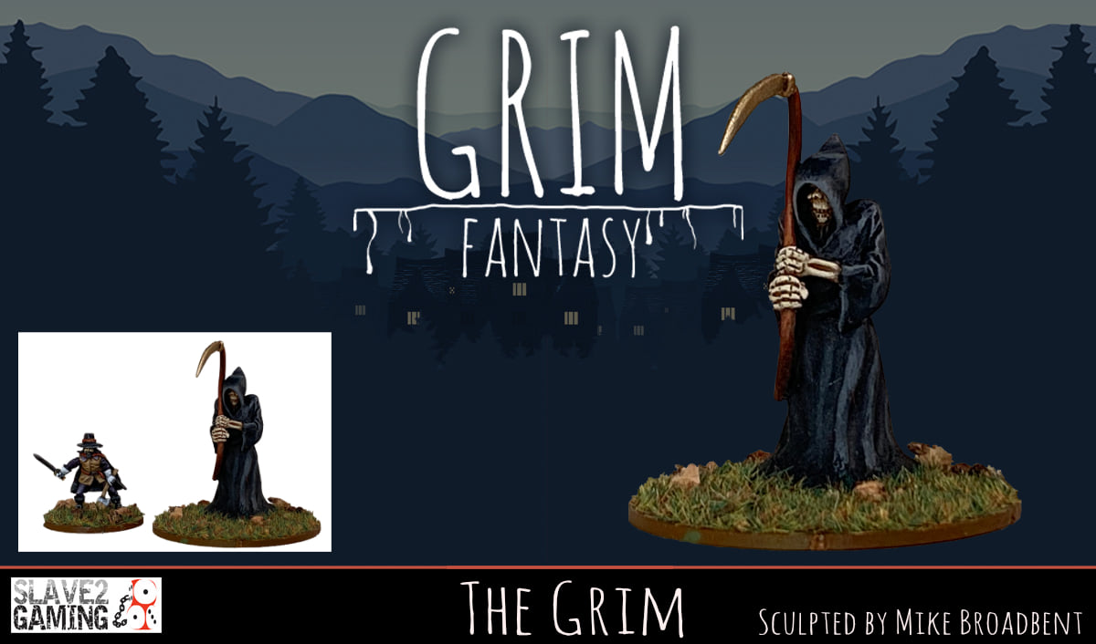 G’day once again from the Slave Dungeon,This month’s release from Slave 2 Gaming is a fairly small release with three new packs for our 15mm Grim Fantasy range.The figures have been amazingly sculpted by Mike Broadbent.The first pack is a Unique Character pack containing the Headless Horseman (both mounted and on foot), a Witch Hunter and a Scarecrow Spellweaver. All these figures are metal and retail for A$8.00Next is the Character pack 2, this contains some more Unique characters from the town of Armbraid; the Preacher, the town Drunk, the Butcher and the Blacksmith. Once again, these figures are also metal and retail for A$5.00The final pack for this release is something different, he is a 50mm tall (to the top of his Scythe) undead Grim Reaper figure that we refer to in the Grim Fantasy world as “The Grim.” This figure is actually used in play as a tool that is passed between players and affects the game, sometimes in a very brutal way! This final figure is also metal cast and costs A$10The picture without the background above shows how we have used The Grim in playtesting:Check these new figures out, and all our other ranges at www.Slave2Gaming.com