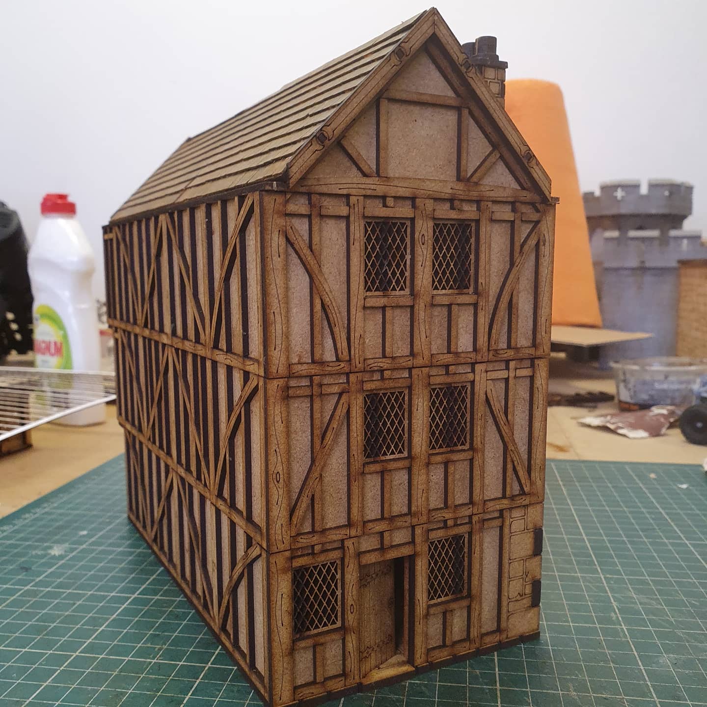 I hope you like the new item coming soon. A three storey timber framed house with interior. There will be smaller and different versions coming too.If anyone is wondering why the the only thing painted is the roof, I covered it in gluey fingerprints and it looked dire. It is white card, and those that know me will be reeling in shock and horror.Inspiration came from the Shambles, York and I’ve seen others elsewhere to use.EnjoyEDIT: I forgot to add all floors have a 25mm grid on them if you look carefully