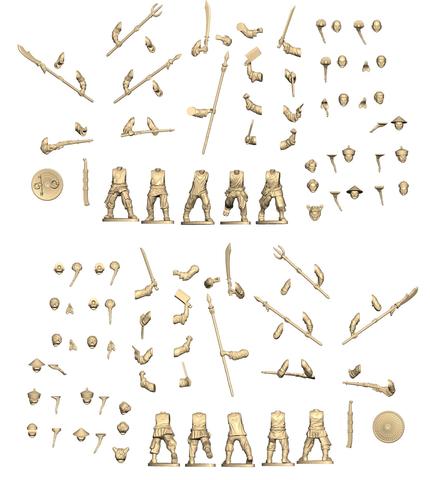We have been experimenting with different head sizes for the new Spanish Napoleonic hard plastics set. Let us know which you prefer – A, B, or C. Those are 3 of the unique bodies in the set. (these are lower-resolution 3D prints for a quick test)