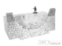 The ruined upper walls (left and right) feature authentic bamboo and mudbrick textures, to show the construction of the inner walls. The stone bases (left and right) feature loose and broken tiles and scatterings of rock.