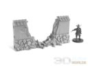 120mm width of ruined stone wall, in 4 detailed parts, to fit the Stone Walls Set. The upper walls (approximately 38mm tall) can be separated from the stone bases (20mm tall), and include holes for 5mm x 1mm magnets in each end.