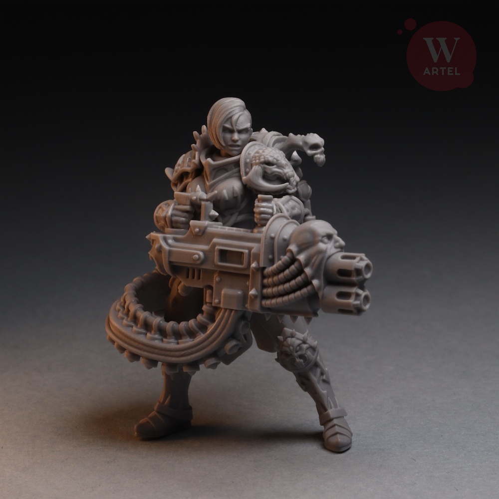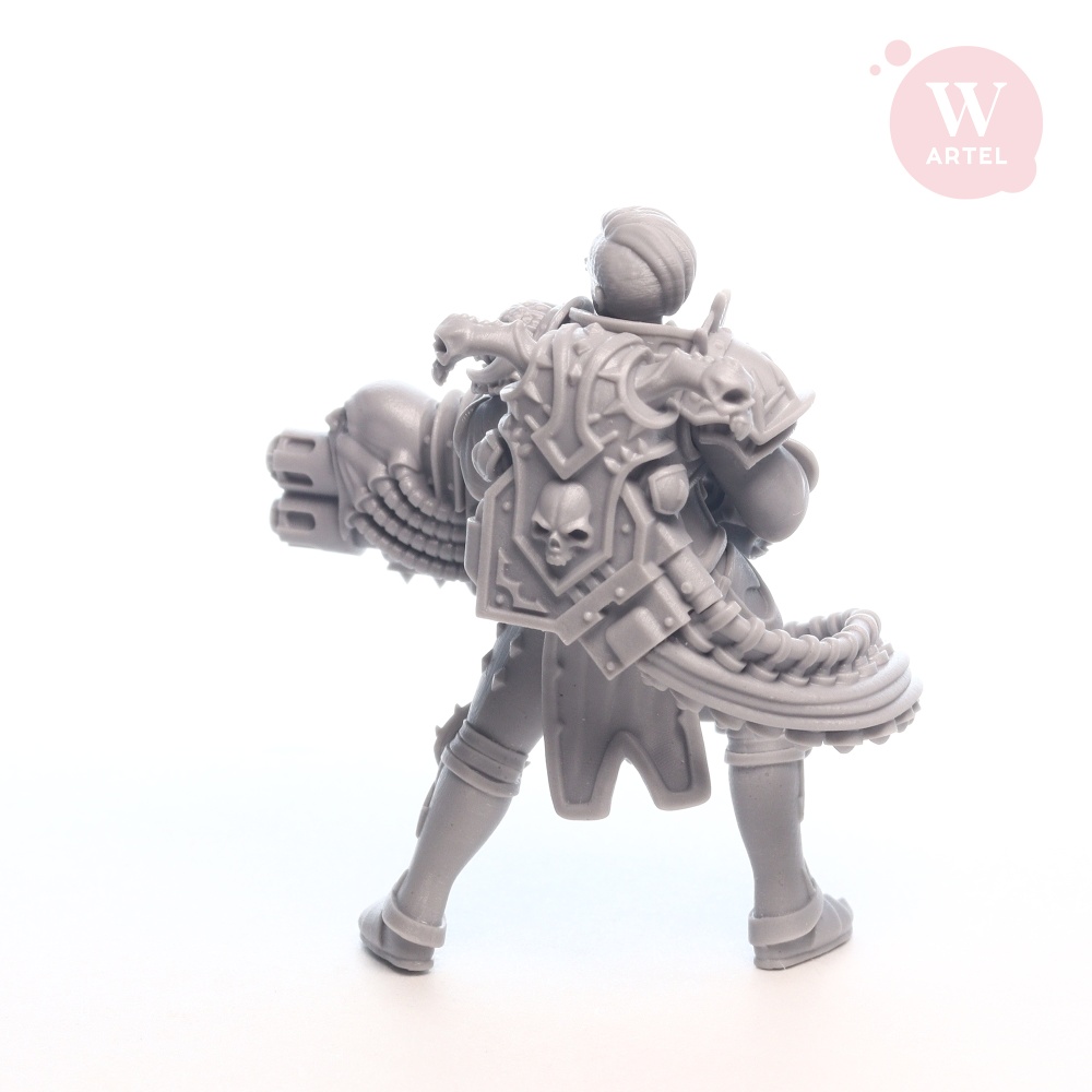 Sister Damnatrix operates the most devastating weaponry at Sisterhood’s disposal. These bloodcurdling implements of destruction, imbued with Dark Gods’ insidious will, shower the enemy with rain of steel and fire mixed with the meanest sorcery.