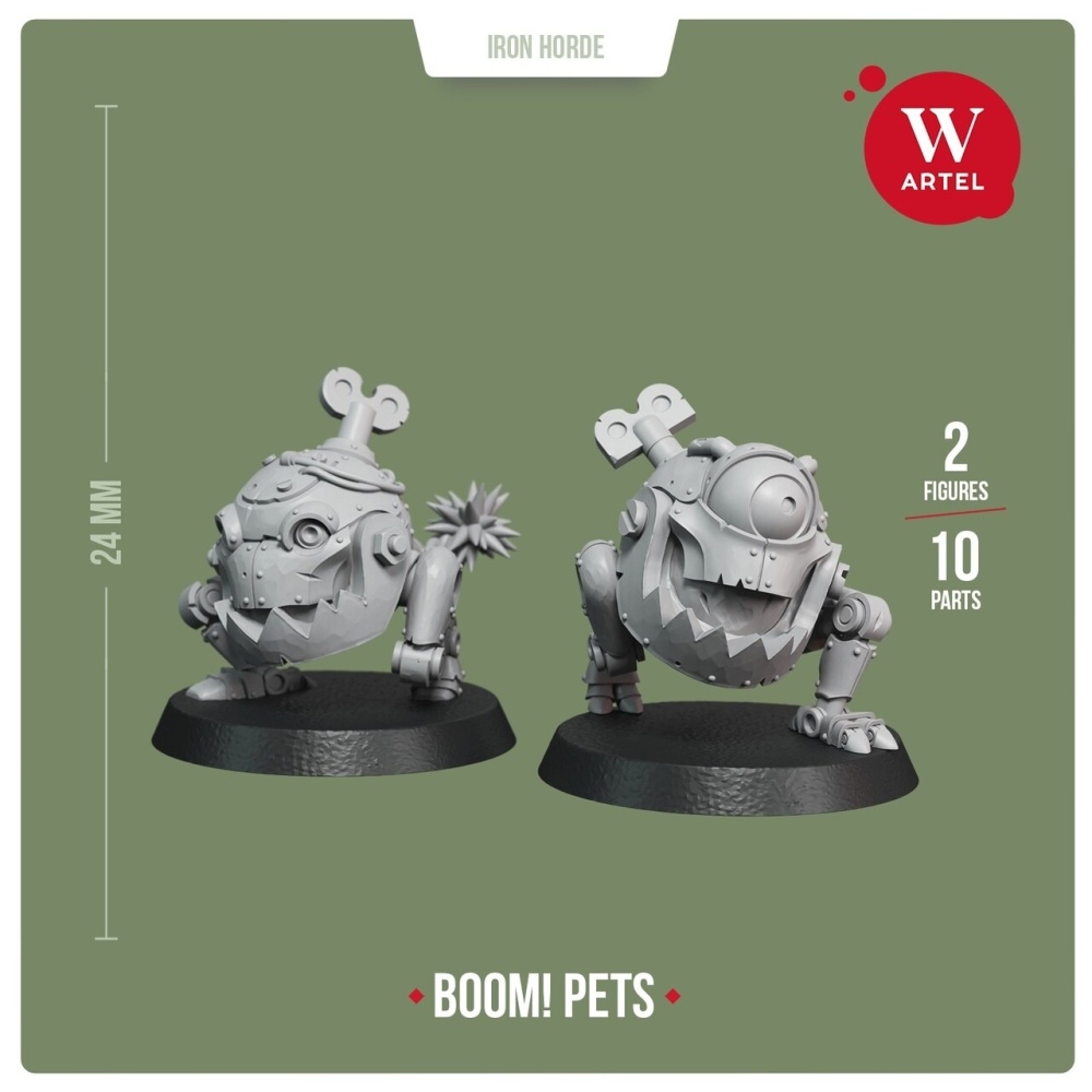 The kit contains 57+ parts for 5 ladz miniatures (you can add Chief and Petz in the Options section), including optional roket pistols/grenades for one of da ladz