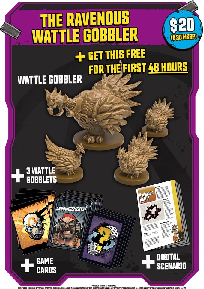 - 4x miniatures: The Ravenous Wattle Gobbler, 3x Wattle Gobblets