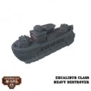 The Excalibur Heavy Destroyers are also typically found with the Victory class ships. Their role is to deter smaller attack vessels from swarming the immense Carrier.