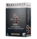 In ihren Reihen steht Holga Clovenhorn trotzig, bewaffnet mit einem brutalen, stachelbewehrten Streitkolben. Ihr Name nimmt auf ihr zerbrochenes Horn Bezug – eines jenes Paares, das ihr von den Dunklen Göttern zusammen mit dem verdorbenen Schild geschenkt wurde, den sie auf dem Rücken trägt. Holga ist in die Rüstung der Sklaven der Finsternis gehüllt und kann daher je nach deinen Wünschen als Chaoskrieger, Erhabener Held des Chaos oder Kriegsherr des Chaos eingesetzt werden.