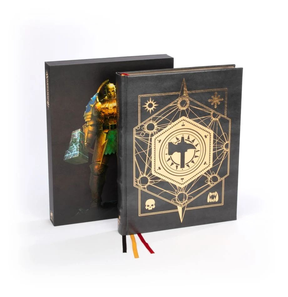 Strictly limited to 2,000 uniquely numbered copies worldwide, this 360-page hardback book is of exceptional quality, complete with three ribbon markers (1 red, 1 gold, 1 black), gold gilt edges, and gold foil blocking on the front and the spine. The book is presented in a slipcase decorated with foil-blocking and art from Warhammer Age of Sigmar: Dominion, and it is the essential version for any fan of Warhammer Age of Sigmar who is looking to commemorate the best-ever edition of the game.