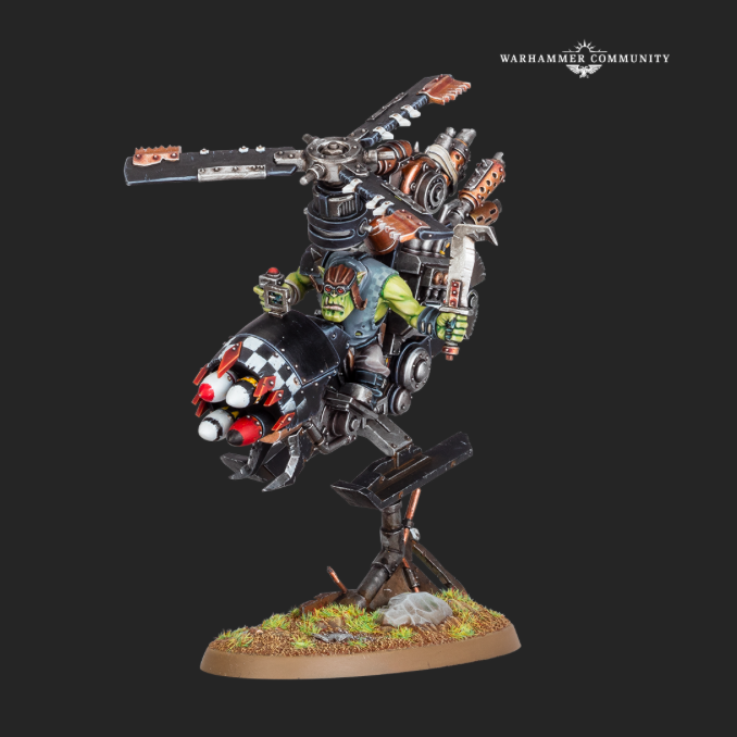 Last but not least, a group of enterprising Mekboyz have been working day and night and are at long last proud to unveil their mighty new Deffkoptas.* Hideously dangerous even by the standards of ordinarily ramshackle Ork vehicles, the sheer noise and speed they can achieve makes them popular among the most daring Boyz.