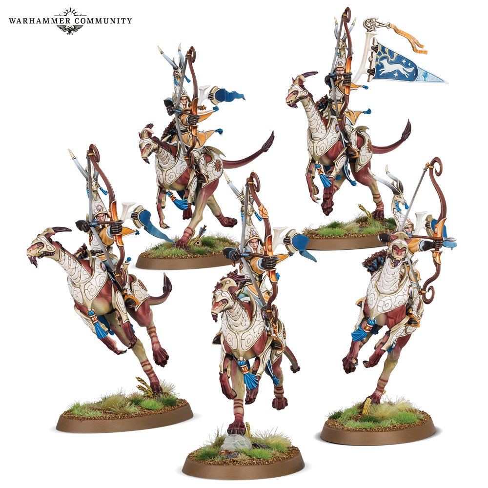 If it’s the fast cavalry you’re after, look no further than a unit or two of Hurakan Windchargers. Riding atop their Treerunner steeds, they sweep into the fray to deliver killing arrows with unerring accuracy. There are no finer mounted archers to be found anywhere in the Mortal Realms.