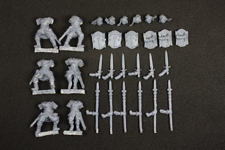 This set contains 14 models and parts to make 6 swordsmen, 6 spearmen and 2 commanders.