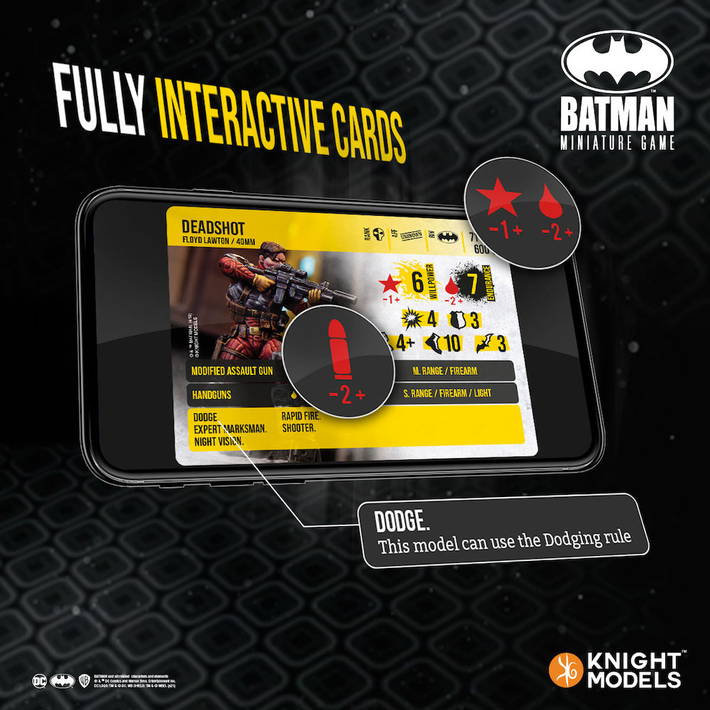We are very excited to have this tool, as it will allow us be able to always have the character cards updated and include improvements balance periodically, so that all your miniatures are always an attractive choice for your engagements in Gotham.