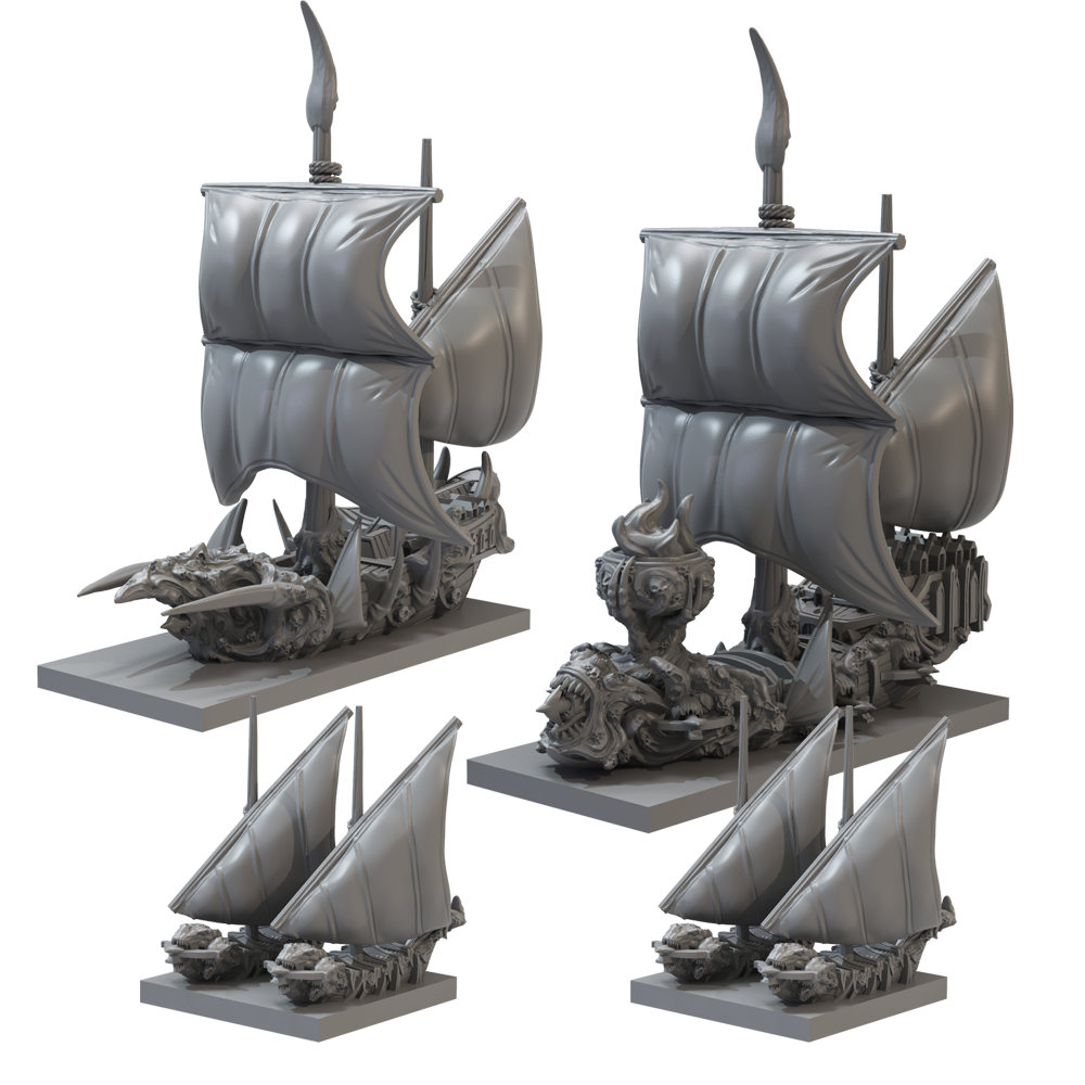 Though sightings beyond the Infant Sea are still rare, recent reports tell of black and twisted vessels engaging in battle along the Ice Blood Coast and even challenging Sea Kindred squadrons in the Vieshan Gulf. As they grow in power, so do the ships of the Twilight Kin take on a darker and more sinister aspect, increasingly resembling the leering, ravening Nightstalkers to which they are inextricably linked.