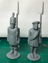 Der Inhalt war mehr als einfach. Bei den Metallmodellen mussten nur die Gußgrate gesäubert werden. Bei den Plastikminis musste nur ein Kopf auf den Körper geklebt werden und die Gußgrate entfernt werden. Diese waren leider recht deutlich und stachen beim ersten betrachten heraus. Mit einem Messer liessen sich diese aber gut entfernen. Der Guss ist sowohl beim Plastik als auch bei den Metallminis dennoch gut und die Details sind scharf und nicht verwaschen. Nach dem Zusammenbau fiel uns allerdings auf, dass die Metallminis einen hauch kleiner als die Plastikmodelle sind. Dies sollte im Regiment jedoch nicht zu sehr auffallen.