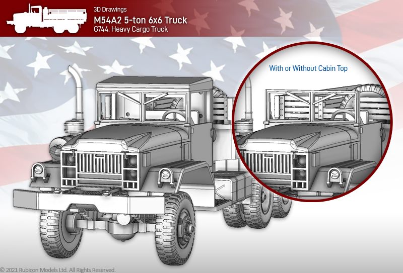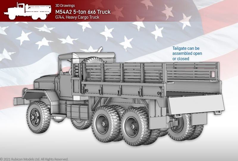 New Project for the month of May – US M54A2 5-ton 6×6 Truck (G744). The M54A2 (base model of the M39 series) was the primary heavy cargo truck used by the US Army, USMC, US Navy, US Air Force, and the ARVN during the Vietnam War. It was replaced by the M809 series in 1970, followed by the M939 series in 1982, but continues to serve in other nations‘ armed forces around the world.This multi-sprue plastic kit will include options like a rear tarpaulin cover and MG gun mount. Gun truck conversion is also planned.