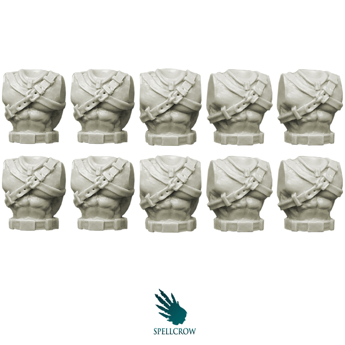 This set contains 10 Desert Guards Torsos ideal for converting Desert Guards and other fantasy miniatures in a 28 mm scale. High-quality resin casts. Require cleaning and painting.