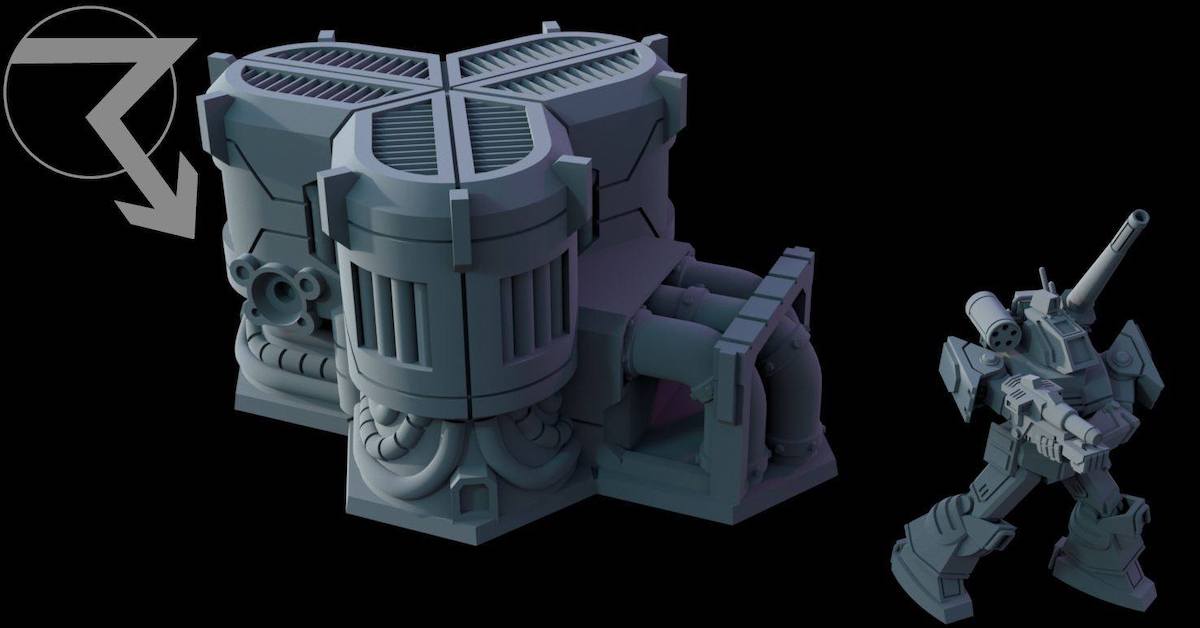 Adding several more options to the upcoming Hextech Power Complex terrain set.The fusion reactor is one of the most efficient and powerful methods of power generation to those with the resources to construct and maintain them, composed of a large central reaction chamber and heat exchanger surrounded by a trio of magnetic field containment pylons charged by a series of plasma containers at the base of the main chamber.Taking advantage of naturally occuring heat sources, though, is a far less resource intensive and fragile method of powering smaller complexes and residential areas. Geothermal heat exchangers placed in tectonic boundary zones can use the naturally occuring heat deep below the surface to convert water to steam with no further resource consumption.Each of these units have connection points for the Hextech Industial Fluidworks pipelines in order to connect them with storage tanks, pumps, and the Hextech Industial Power Complex freestanding generators so you can construct a hex-friendly power complex of virtually any footprint or scale with modular components.There are still a few pieces to add to this set before it’s ready for release, so keep an eye out for more updates before these files and prints are added to the Hextech roster at Steel Warrior Studios!