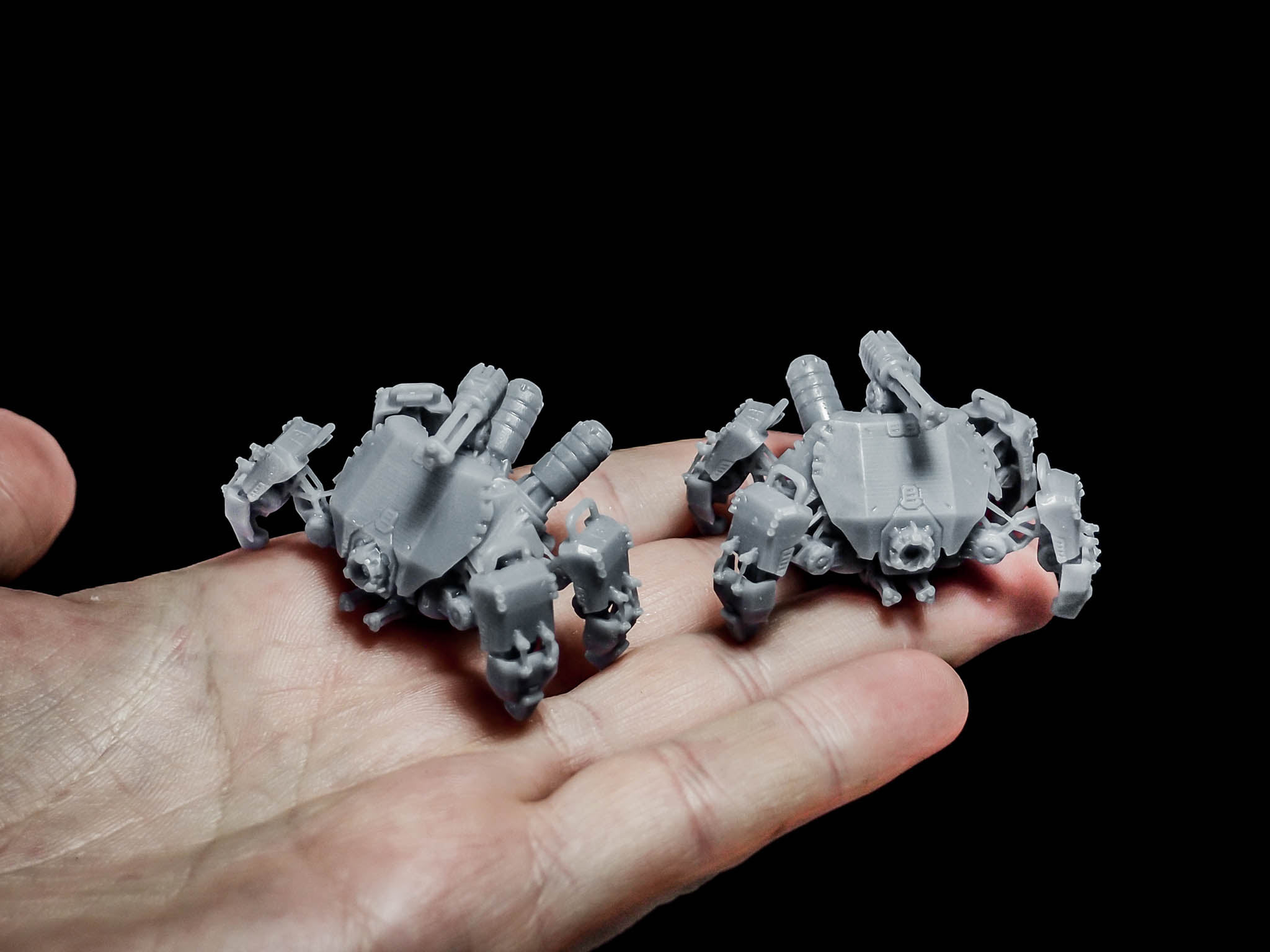 The robots are meant to be printed about 30mm tall, but can be upscaled to cover different roles for gaming from 6mm games up to 28mm.The models are provided as .stl files and are PRE-SUPPORTED. They have been extensively tested at 100% scale. A resin printer is recommended: the models shown in picture are printed at with a Anycubic Photon S. Any budget entry resin printer will be capable to achieve similar results.