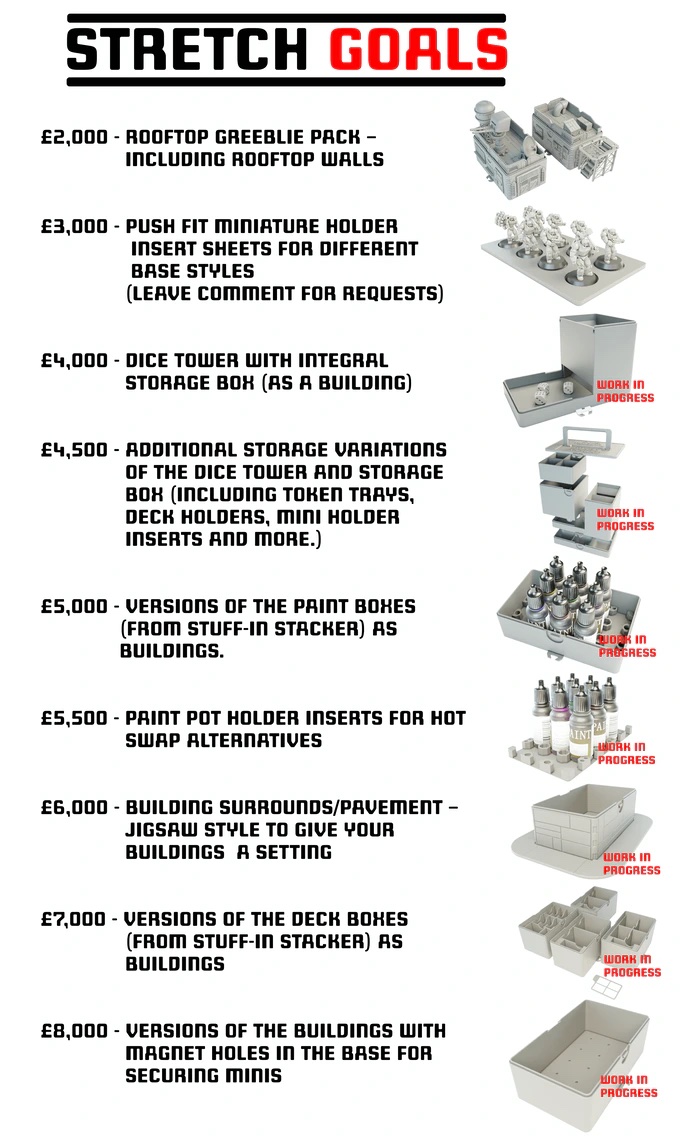 We haven’t pre constructed any addon packages for this as our collection is now vast, instead we will be sending every backer a code which will allow people to pick up models and packs from our collection with a significant discount at the end of the campaign if you wish to pick up any extras for your collection.