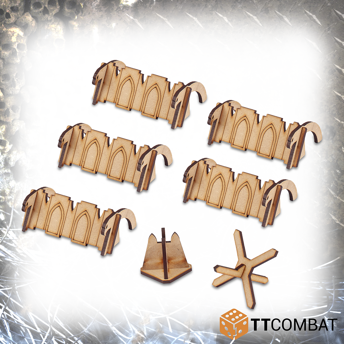This kit is made from 3mm MDF and has been designed for 28-32mm gothic sci-fi games, though would work well in any gothic fantasy setting as well.
