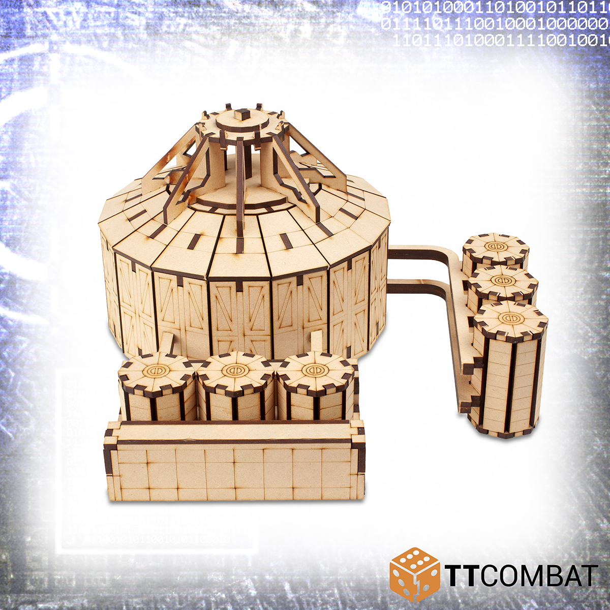 A Compound Chakwas is an imposing structure, at least as far as 10mm scale goes. This structure makes for a great solid centrepiece for your board. Unmistakably industrial and build to contain some pretty dangerous compounds, your units -should- be safe from enemy fire behind it.